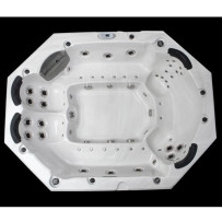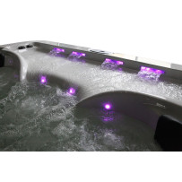 Minipiscina idromassaggio in acrilico, getti in alluminio totali 24, pompa di ricircolo, pompa idromassaggio, pannello di controllo, riscaldatore, ozonizzatore, sistema di filtraggio, illuminazione a led, 2 sedute.