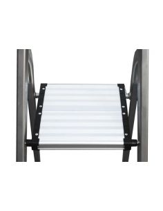 Gradini in profilo rettangolare mm. 40 x 20 con profonda rigatura antiscivolo distanziati ogni 27 cm. consentono di utilizzare ogni montante come una vera scala verticale e di posizionare i piani di lavoro e i parapetti intermedi con grande facilità