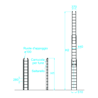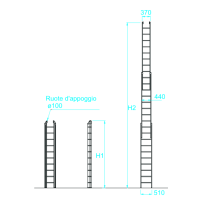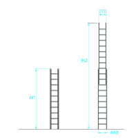 Una scala d'appoggio con caratteristiche base risulta essere la più leggera nella sua categoria e i due tronchi a sfilo consentono di dimezzare il suo sviluppo quando viene riposta.