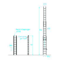 Scala professionale a sfilo in due tronchi a pioli allungabile a mano