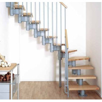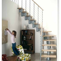 Ciò permette, oltre alla massima adattabilità al vano scala, configurazioni rettilinee, con una o due curve. I gradini e il corrimano sono in massello di faggio tinta chiara (naturale) o tinta scura.
