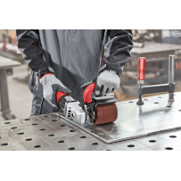 La levigatrice a nastro è prevista per l'impiego professionale nell'industria e nell'artigianato, per la rettifica di tubi, per smerigliare cordoni di saldatura, per l'impiego con nastri abrasivi.